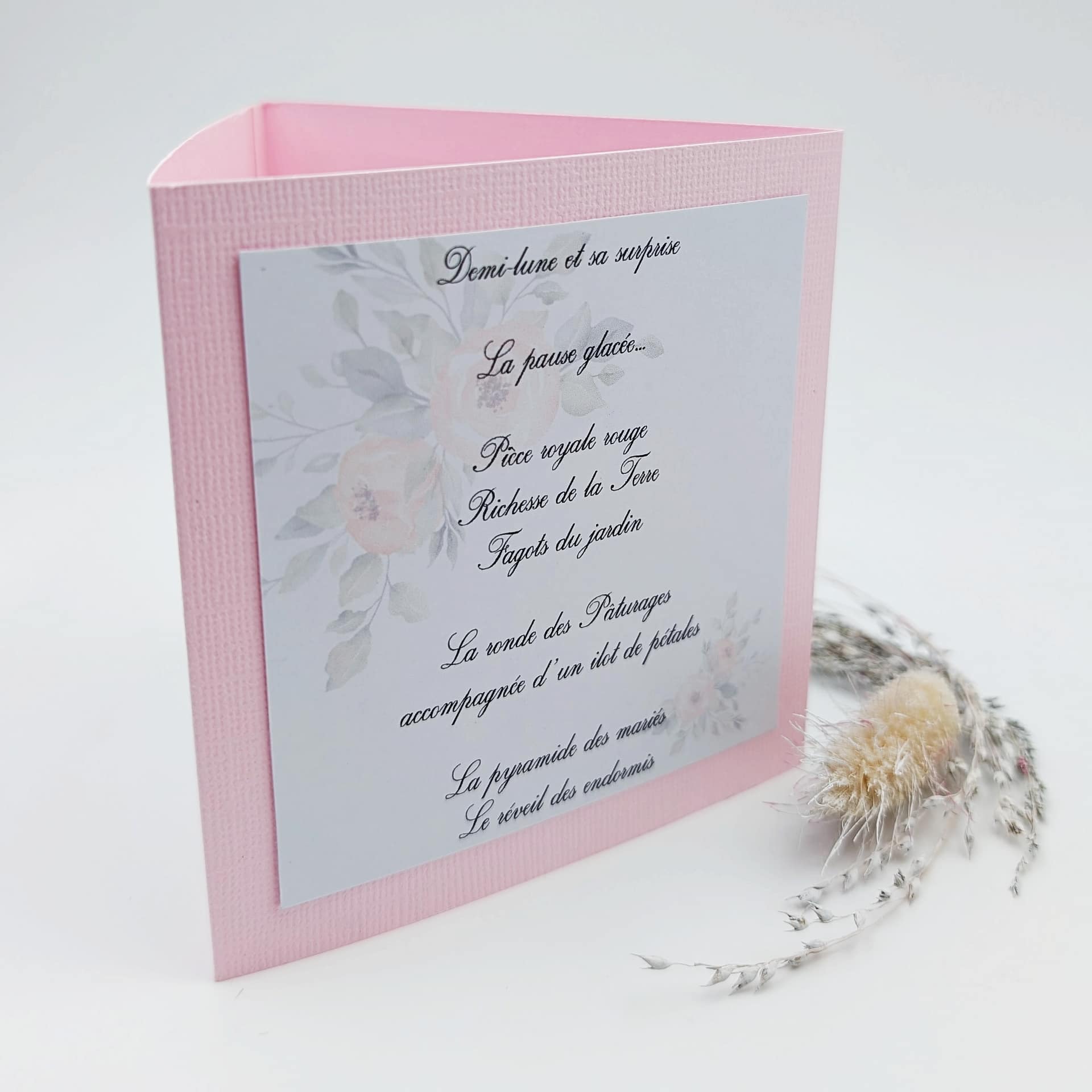 Ce marque table de mariage Bohème est conçu avec un support de couleur rose pâle, sublimé par un numéro de table imprimé sur papier couché lisse satiné. Je découpe le tout à la main pour une finition impeccable. Vous avez la possibilité de choisir une impression de votre menu sur une face pour un 2en1 épatant.